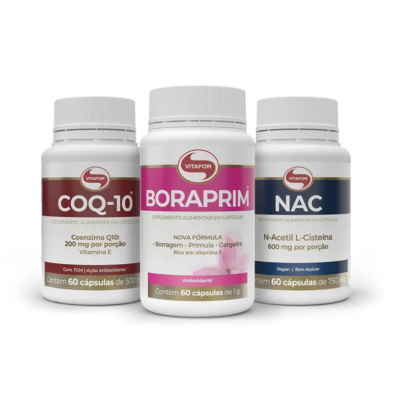 Kit Fertilidade - Vitafor é composto por: Boraprim - 60 cap - Vitafor, Coenzima Q10 - 60 cap (200mg p/ porção) - Vitafor e NAC - 60 cap - Vitafor