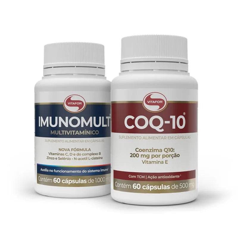 Kit Vitalidade - Vitafor é composto por: Coenzima Q10 - 60 cap (200mg p/ porção) - Vitafor e Imunomult Multivitamínico - 60 cap - Vitafor